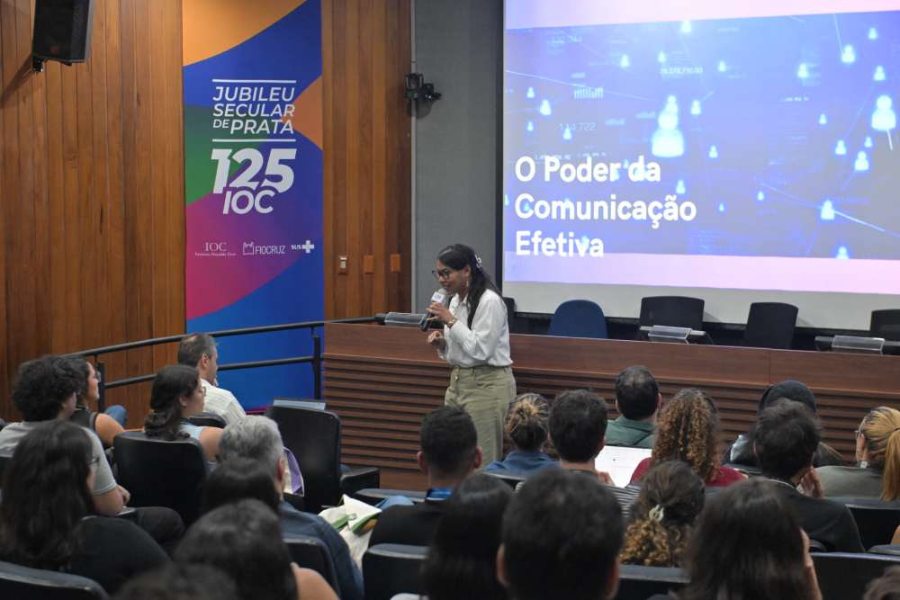 À tarde, a programação seguiu com as Mesas Científicas, pensadas como uma oportunidade de os discentes tirarem dúvidas ligadas às suas pesquisas e trabalhos no IOC.